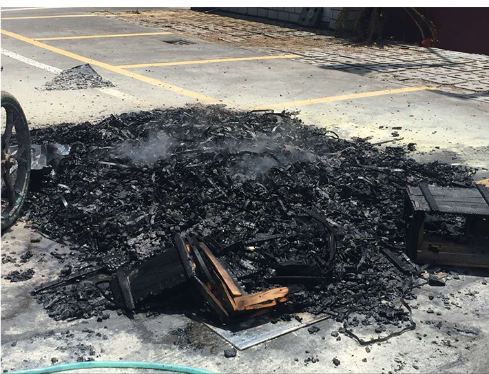2016年6月22日,防治小組成員準(zhǔn)備了汽油、滅火器及水管,疏散了部分車(chē)輛和無(wú)關(guān)人員,在確保周邊環(huán)境安全后,將百余件松木箱至廠區(qū)空曠處進(jìn)行焚燒銷(xiāo)毀。待大火撲滅后,小組成員上前查看,確保松木盡數(shù)化為灰燼。