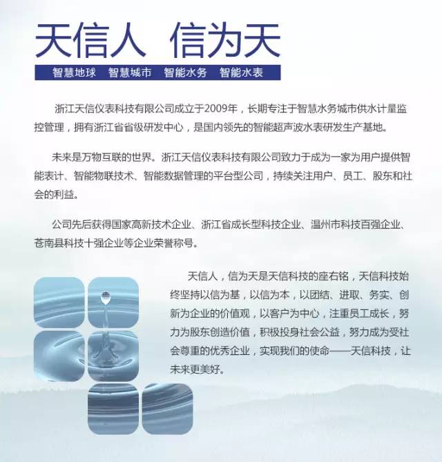 浙江天信儀表科技有限公司是天信儀表集團下屬子公司,主要從事水表、流量計、壓力儀表和GPRS...